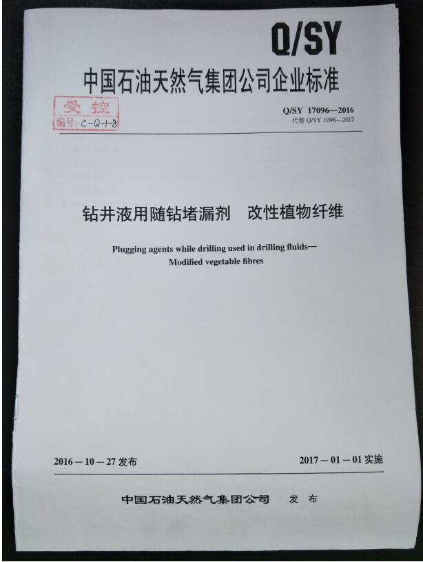 鉆井液用隨鉆堵漏劑(改性植物纖維)(Q/SY17096-2016)